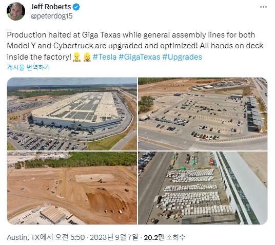 로버츠는 “양산을 앞둔 사이버트럭 조립라인과 모델Y 조립라인을 중심으로 기가팩토리5를 재편하고 최적화하기 위한 작업 때문에 공장 운영이 일시적으로 중단됐다”고 밝혔다.