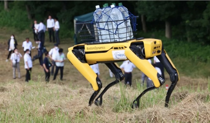 보스턴 다이내믹스 '스팟'(Spot)은 4족 보행 로봇으로, 사람과 동물의 움직임을 모방하여 다양한 지형과 장애물에 적응할 수 있다. 스팟은 무게가 32.5kg, 최대 속도는 시속 5.76km/h, 최대 적재 무게는 13.6kg다. 한 번의 충전으로 최대 90분 동작할 수 있으며, 충전식 카트리지 배터리를 사용한다.