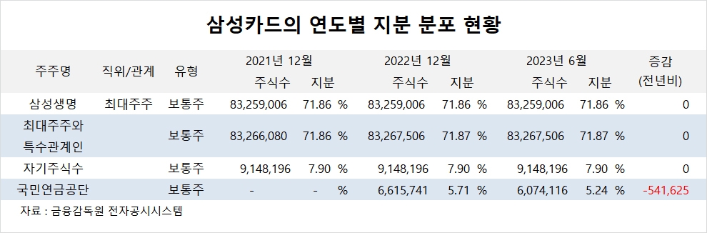 국민연금공단은 올해 상반기 삼성카드 주식을 54만여주 팔아 지분을 낮췄다.