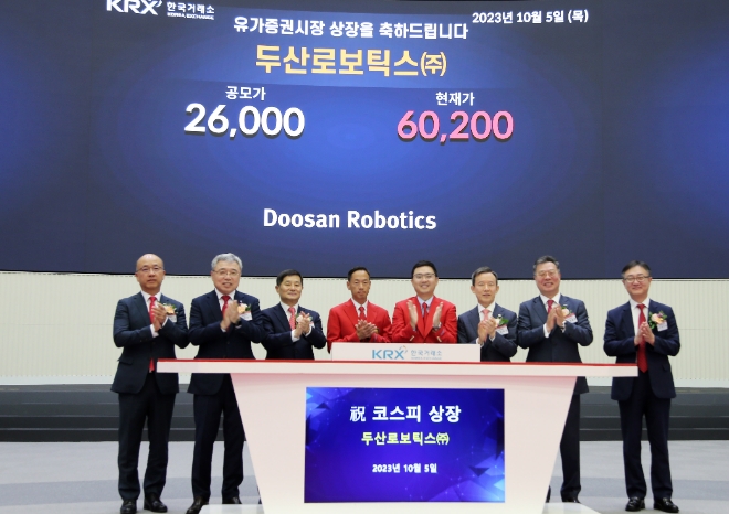 이어 상장 계약서에 서명하고, 상장기념패 전달식을 가진 뒤 박 대표와 류 대표가 두산로보틱스의 거래 시작을 알리는 매매개시 벨을 누르는 것으로 행사가 마무리됐다.
