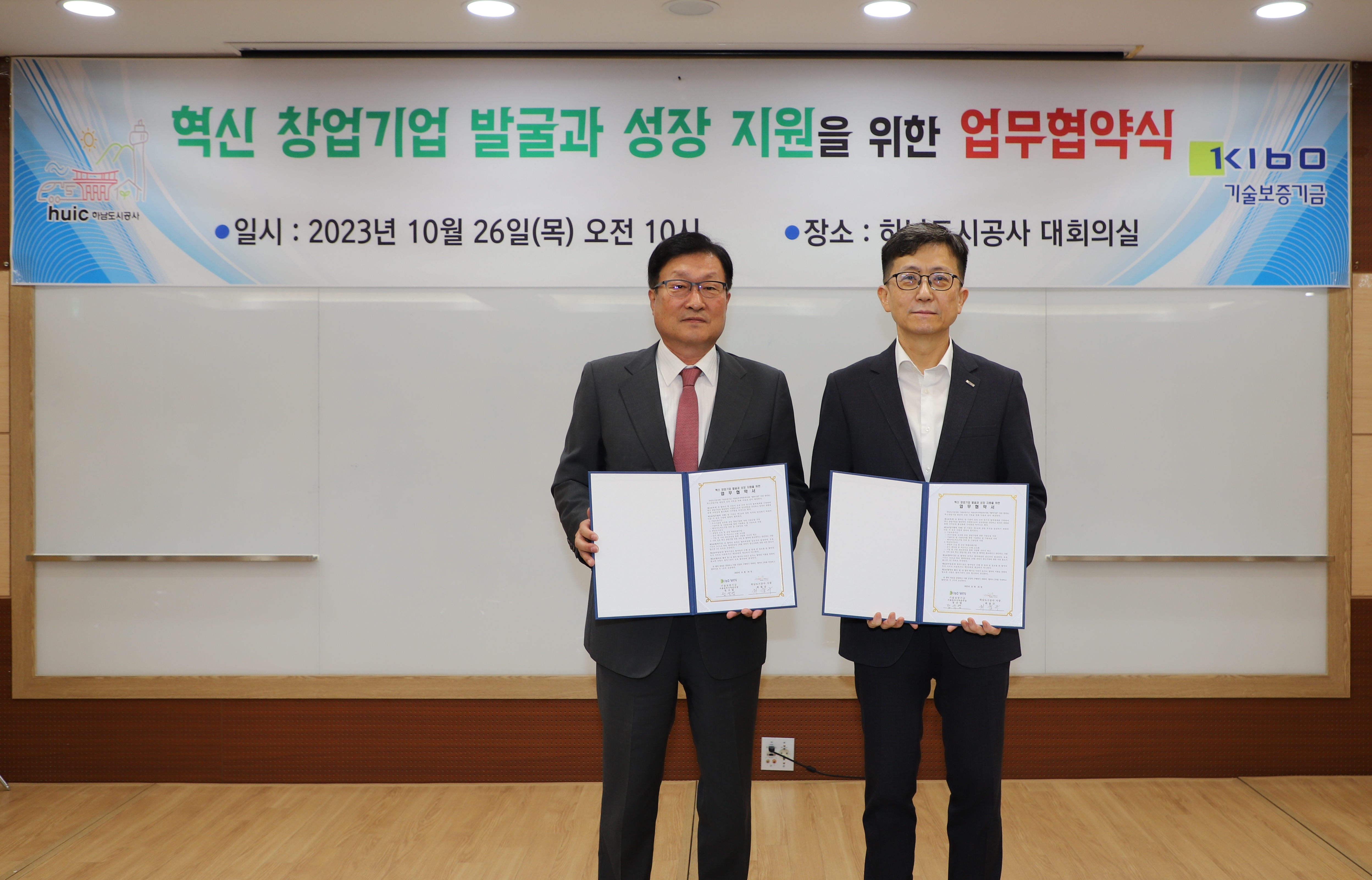 이미지 확대보기하남도시공사는 기술보증기금 서울동부지역본부(이하 ‘기보’)와 하남도시공사 대회의실에서 이같은 내용의 업무협약을 26일 체결했다.