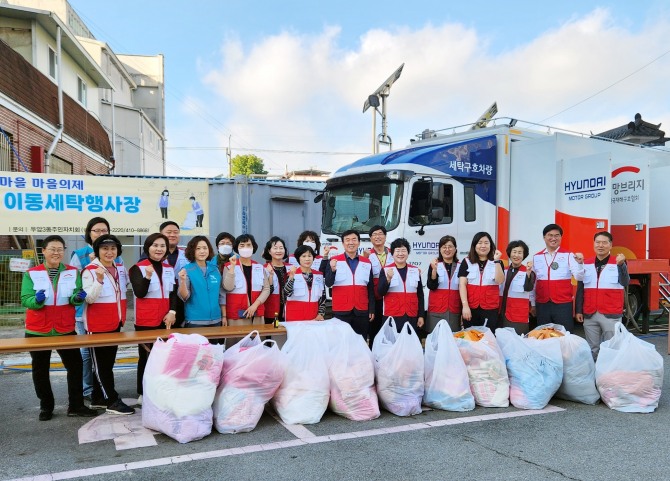 광주 두암3동에서 진행한 세탁봉사 참가자들이 기념 촬영을 하고 있다. /사진=희망브리지