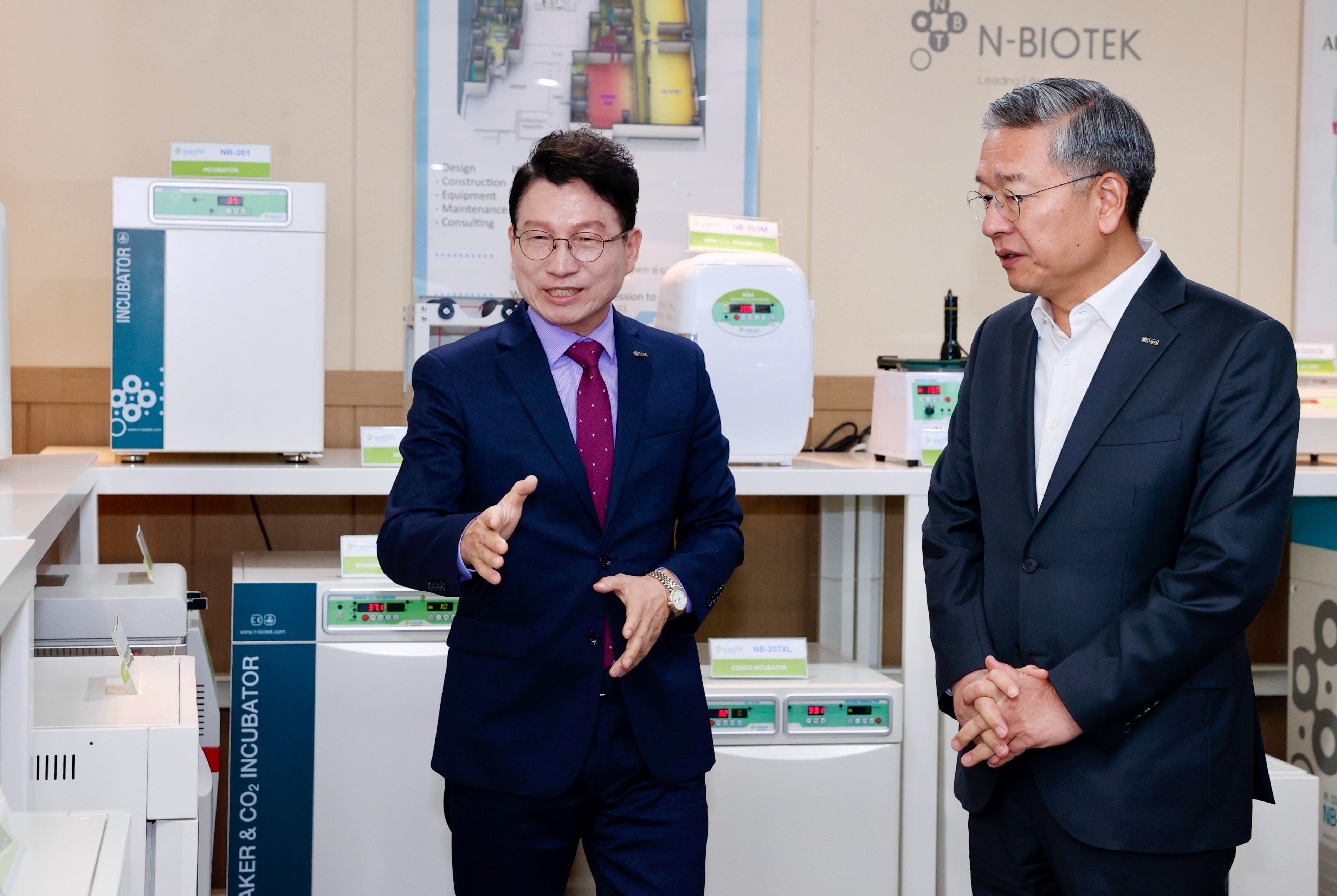 김종호 이사장은 김대용 엔바이오텍 대표이사와 함께 연구개발시설을 살펴보고, “초격차 미래전략산업 분야에서 혁신기술기업이 강소기업으로 스케일업할 수 있도록 다방면의 지원을 아끼지 않겠다”고 밝혔다. 그러면서 “특히 생명과학 장비업계는 글로벌시장 선점을 위한 경쟁이 치열한 만큼 기술개발과 투자를 가로막는 불합리한 규제 해소에도 노력하겠다”고 강조했다.
