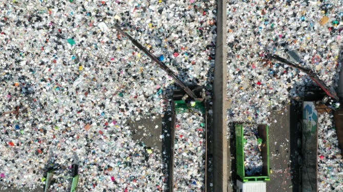 자원순환의 날이었던 지난 9월 6일 경기도 수원시 자원순환센터에서 관계자들이 가득 쌓인 플라스틱 폐기물을 재활용하기 위해 입반출 작업을 하고 있다. 사진=뉴시스
