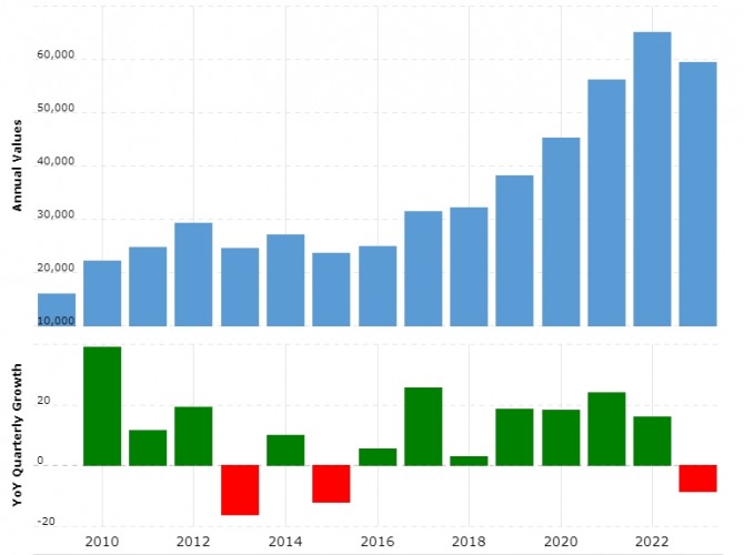 지난해 3분기(MS 기준 2024년 1분기) 실적을 토대로 하면 향후 MS의 성장은 이제 시작에 불과하다. 매출은 전년대비 13% 증가한 565억달러로 예상치(545억2000만달러)를 상회했다. 사업부문별로 보면 인텔리전트 클라우드 부문(애저 클라우드 등)이 19% 증가한 242억5900만달러를 기록하며 외형성장을 주도했다.