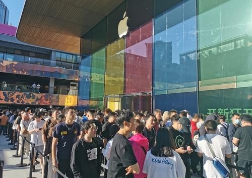 애플 매장 앞에 줄을 선 중국 소비자들. 사진=연합뉴스