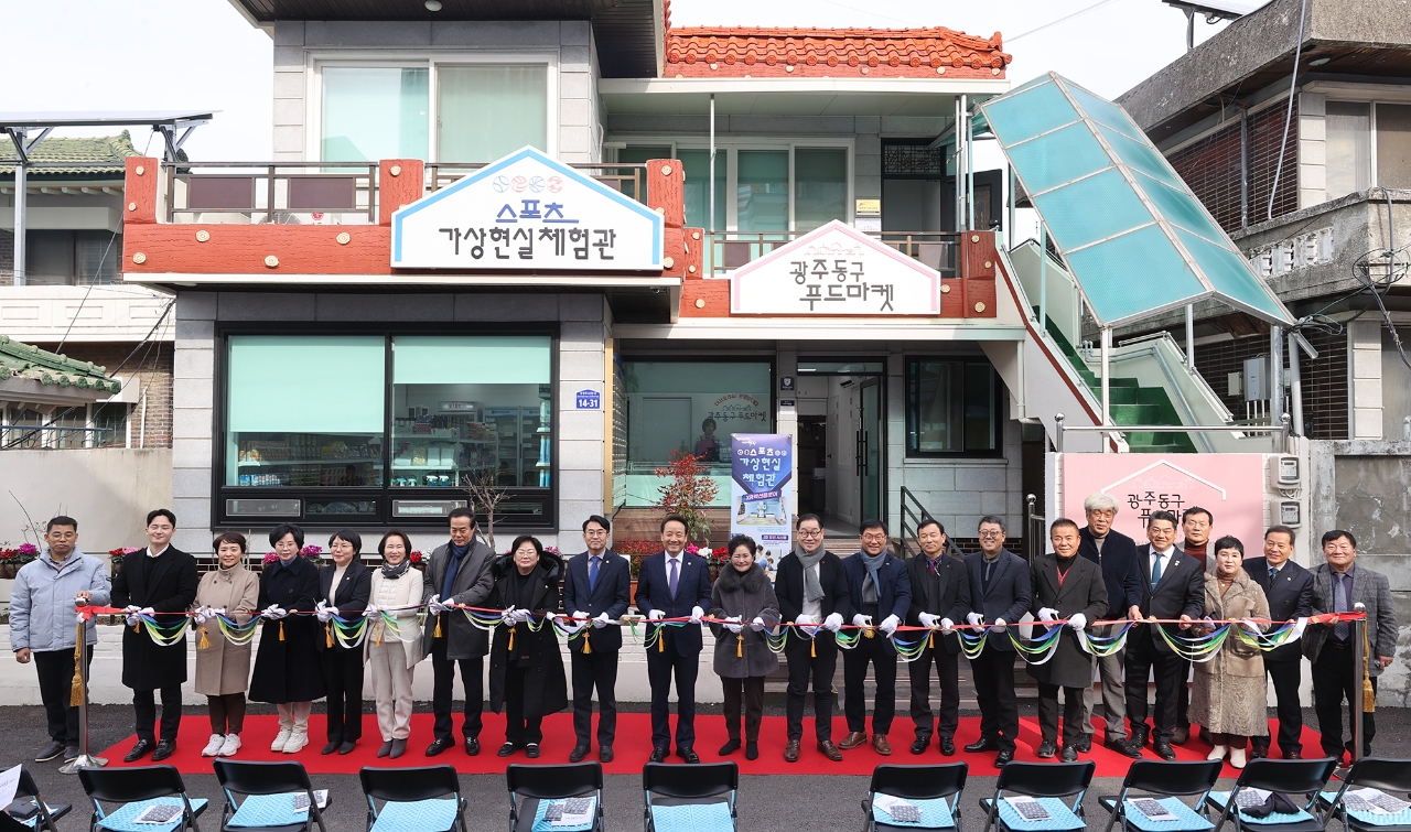 광주 동구는 16일 계림1동 내 소재한 동구푸드마켓 2층에 공기오염이나 이상기온 등 환경 제약 없이 남녀노소 다양한 종류의 신체활동이 가능한 ‘스포츠 가상현실 체험관’ 개관식을 갖고 본격 운영에 나선다고 밝혔다. 사진=광주동구청