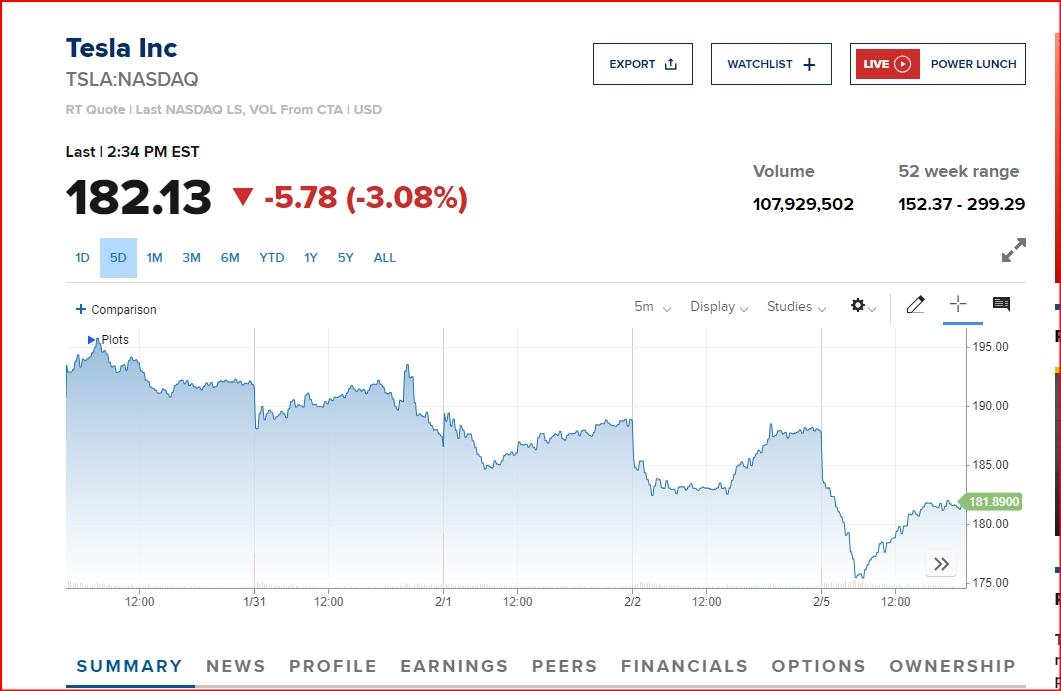 미국 뉴욕증시에서 테슬라 주가가 와르르 급락하고 있다. 독일에서 전기차 구매중단 보도가 나오면서 테슬라 주가가 돌연 떨어지고 있다. 뉴욕증시에서는 달러환율 국채금리 비트코인 국제유가 등이 "제롬파월 금리인하 발언 쇼크"로 흔들리고 잇다.