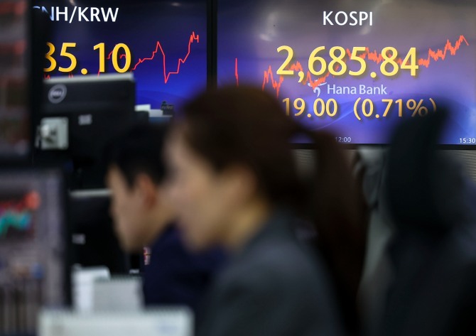 이미지 확대보기18일 코스피 지수는 전 거래일 대비 0.71% 오른 2685.84로 거래를 마쳤다. 이날 코스피 시장에서는 개인과 외국인이 각각 1906억원, 826억원을 순매도한 반면 기관은 2244억원을 순매수했다.