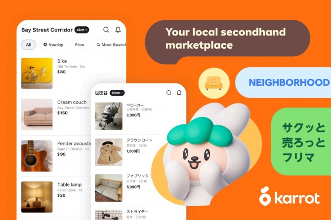 중고거래가 이미 하나의 문화로 자리 잡은 일본에서도 캐롯 앱을 이용하는 이들이 점차 늘어나고 있다. 지난 2월 기준 캐롯의 월 활성 사용자가 전년 대비 3.5배 증가한 것으로 나타났다. 동네마다 중고 물품을 판매하는 크고 작은 가게를 흔히 볼 수 있는 일본임에도 꾸준한 성장세를 기록 중인 모습이다. 도쿄 일부 지역에서만 지원했던 서비스가 지난해 10월부터는 도쿄 전역은 물론 요코하마와 가와사키로 확대되며 더욱 넓은 지역에서 사용되고 있다. 캐롯은 일본 이용자 증가에 따라 점차 넓은 지역으로 확장해 나간다는 방침이다.