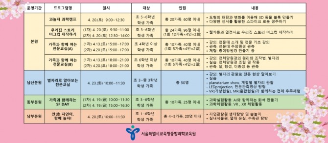 행사 참가를 원하는 가족은 서울융합과학교육원 홈페이지에서 오는 3일부터 신청하면 된다.