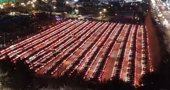 테슬라라티에 따르면 한국의 테슬라 차주 1000명은 이날 경기도 남부 수원에 있는 월드컵경기 주차장에서 ‘테슬라 K-라이트 쇼’라는 이름으로 이 행사를 성황리에 개최했다.