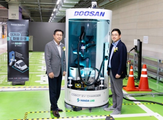 두산로보틱스 협동로봇, 전기차 차량 인식부터 충전까지 자동화