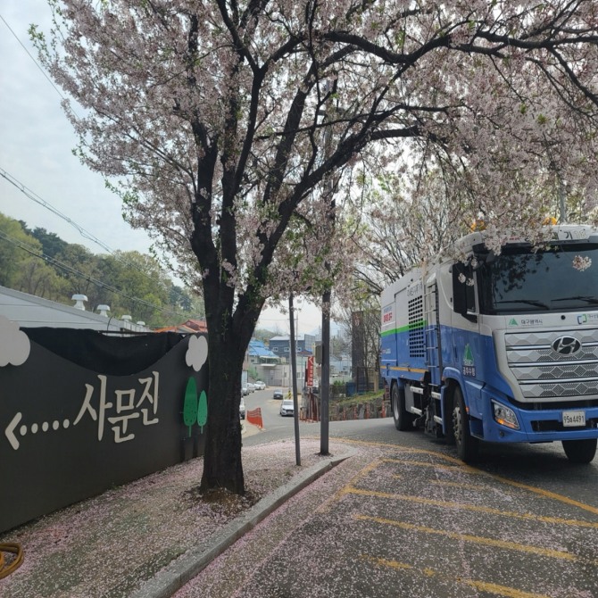 이미지 확대보기‘찾아가는 숨 서비스’는 대구시민의 삶터, 일터, 쉼터, 배움터 인근의 대기질 개선과 보다 건강한 숨을 제공하기 위한 도로재비산먼지 저감 사업이다. 공단 청정대기팀 담당자에 따르면 분진흡입차가 작업한 도로 위는 재비산 먼지가 최대 67%까지 감소되는 효과가 있다.