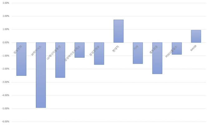 삼성전자와 SK하이닉스 주가는 전일 대비 각각 2.51%, 4.94% 내린 반면, 기아는 1.60% 하락에 그쳤다. 심지어 현대차는 1.73% 상승했다.