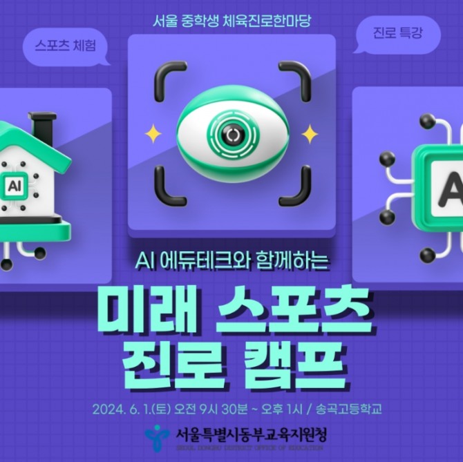이미지 확대보기서울시교육청 산하 동부교육지원청은 이날 숭곡고등학교에서 중학생 250명을 대상으로 ‘인공지능(AI)·에듀테크와 함께하는 공동체 미래 스포츠 진로 캠프’를 연다.