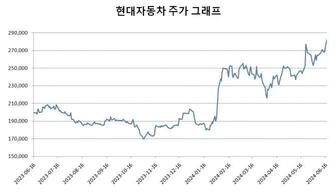 이미지 확대보기17일 한국거래소에 따르면, 오전 9시41분 현재 현대차 주가는 전 거래일 보다 9500원(3.54%) 상승한 27만7500원에 거래되고 있다.