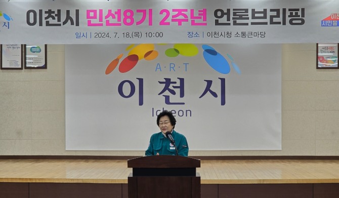 김경희 이천시장이 민선 8기 2주년 기념 언론브리핑을 하고 있다. 사진=이지은 기자