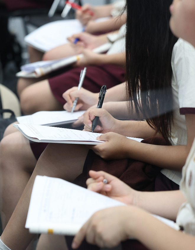 지난 19일 대구 북구 엑스코에서 열린 '제15회 대구 진로진학박람회'를 찾은 학생들이 입시전략 설명을 듣고 있다. 사진=연합뉴스 이미지 확대보기