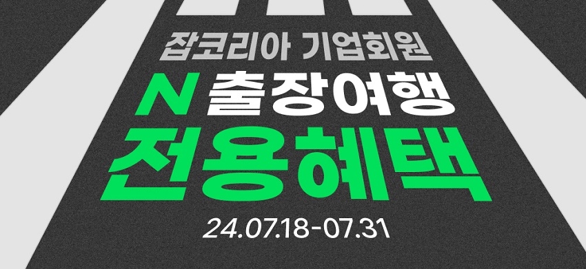 잡코리아는 25일 '잡코리아 기업회원 N출장여행 전용혜택 이벤트'를 실시한다고 밝혔다. 네이버여행과 함께하는 이번 제휴 이벤트는 잡코리아 기업라운지의 회원들을 위한 혜택 강화의 일환으로, 해외출장 준비를 보다 편리하게 할 수 있도록 마련했다.