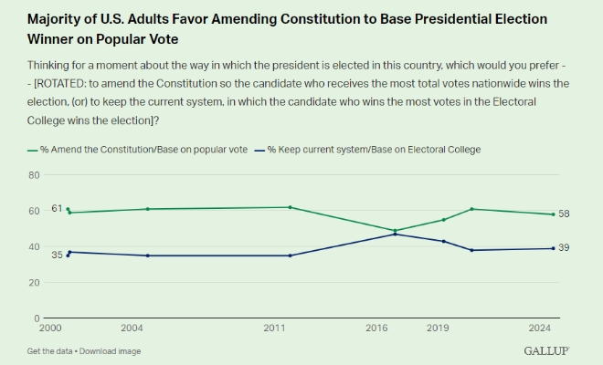 간선제를 향한 미국민의 열망은 최근 유명 여론조사업체 두 곳이 잇따라 실시한 여론조사에서 확인되고 있다.