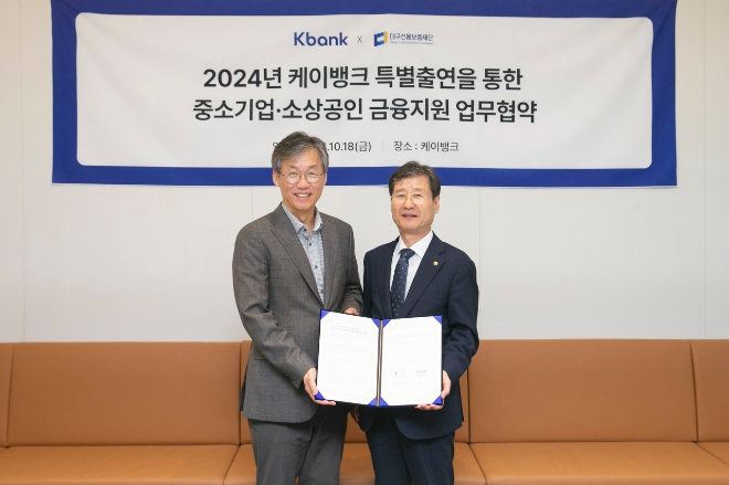 이번 협약으로 케이뱅크는 대구신보에 2억원을 특별출연하고, 신보는 이를 바탕으로 30억원 규모의 협약 보증을 지원한다. 어려움을 겪는 중기와 소상공인 지원을 강화해 지역 창업과 일자리 창출에 기여한다는 방침이다.