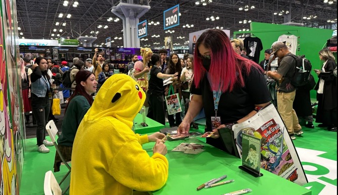 이미지 확대보기네이버웹툰은 올해 처음으로 뉴욕 코믹콘에 네이버웹툰 플랫폼과 작품을 소개하는 부스를 열었다. 네이버웹툰은 이 자리에서 글로벌 언어 학습 앱 듀오링고와의 협업 콘텐츠인 '듀오 언리시드!(Duo Unleashed!)'를 비롯한 다양한 웹툰 작품을 팬들에게 선보였다.