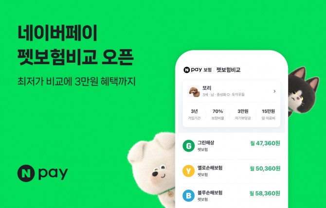 네이버페이가 펫보험비교 서비스를 출시했다. 사진=네이버페이