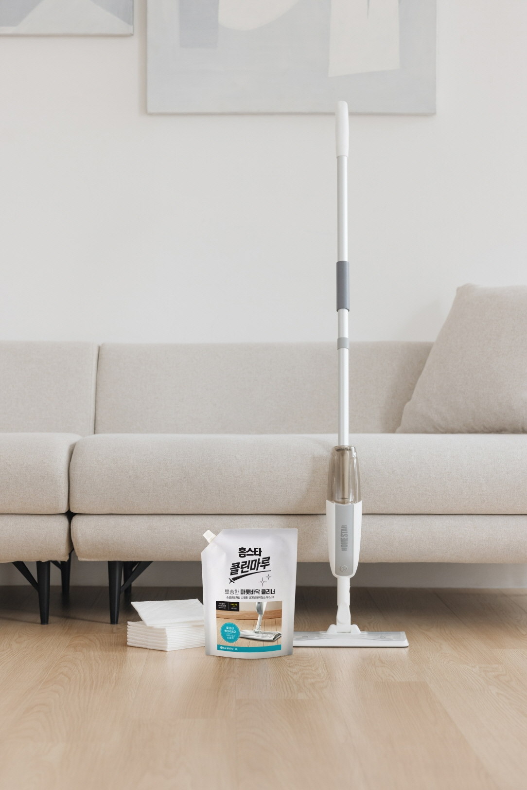 이미지 확대보기8일 LG생활건강에 따르면 바닥 청소는 필수적이면서도 귀찮은 일이다. 청소를 제대로 하려면 청소기, 밀대, 손 걸레, 심지어 돌돌이(롤 테이프 클리너)까지 동원해서 여러 번 반복해서 밀어야 반짝반짝 깨끗하게 마무리할 수 있다.