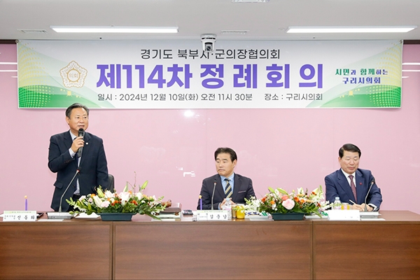 구리시의회 신동화 의장이 경기 북부 시·군의장 협의회에서 제안한 공공개발사업에 따른 토지 보상 양도소득세 감면 확대 촉구 건의문이 만장일치로 채택됐다. 사진=구리시의회 제공이미지 확대보기