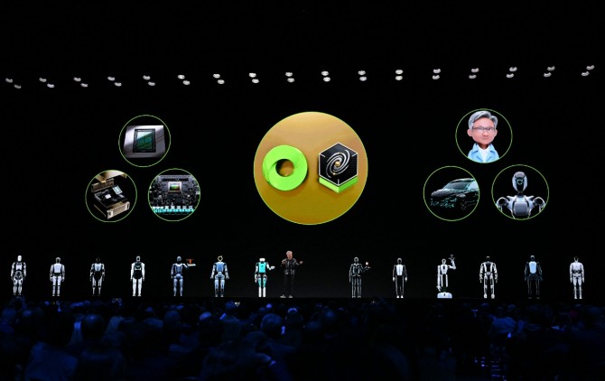 황 CEO는 8년 만의 CES 기조연설에서 ‘피지컬 AI’를 설파하면서 글로벌 파트너사의 로봇과 무대에 섰다. 엔비디아 기술로 휴머노이드 로봇을 만드는 14개 회사는 미국이 4곳, 중국이 6곳이었다. 독일·노르웨이·캐나다·이스라엘도 1곳씩이었다.