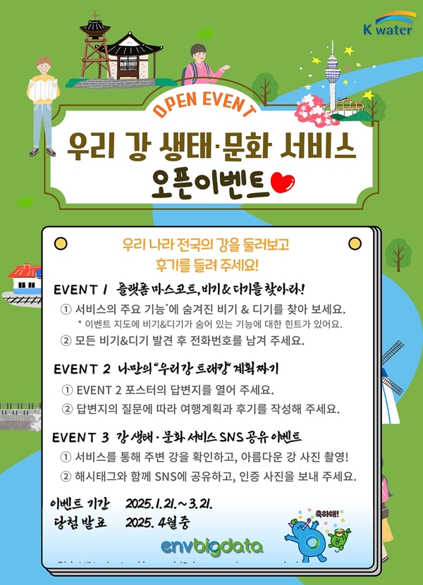 개시 이후 서비스 질과 이용률 확대를 위해 서비스를 누릴 국민을 대상으로 참여형 이벤트도 오는 3월 21일까지 환경 빅데이터 플랫폼 누리집에서 진행된다.