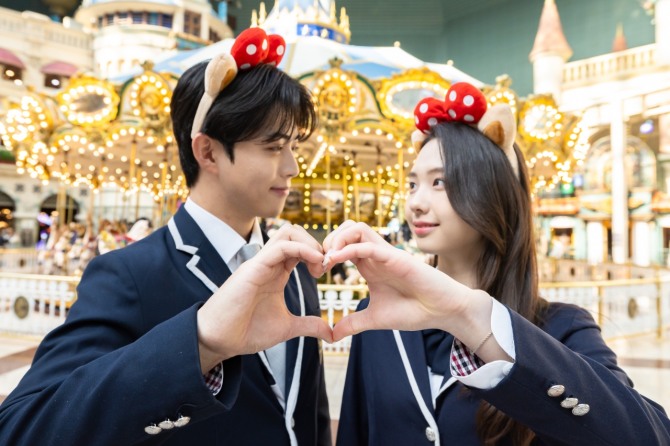 ‘교복 데이트’ 명소인 롯데월드 어드벤처에서는 연인과 함께 교복을 입고 다양한 콘셉트의 인증샷도 남길 수 있다. 불빛이 아름다운 회전목마 앞과 매직캐슬이 한눈에 보이는 오버브릿지 테라스, 반짝이는 미디어트리 등 파크 곳곳이 포토존이 된다.