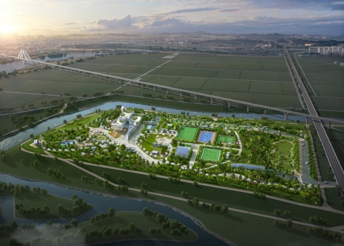 ㈜한화 건설부문은 지난 6일 경기도 평택시 신대동 신대레포츠 공원에서 ‘통복공공하수처리시설 현대화 착공 기념행사’를 진행했다고 7일 밝혔다.현대화 조감도. 사진=㈜한화 건설부문이미지 확대보기