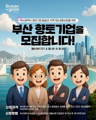 부산시(시장 박형준)는 지역 산업 기반을 이끌어온 부산 연고 기업을 대상으로 ‘2025년 부산시 향토기업’을 다음 달 19일까지 모집한다고 28일 밝혔다.