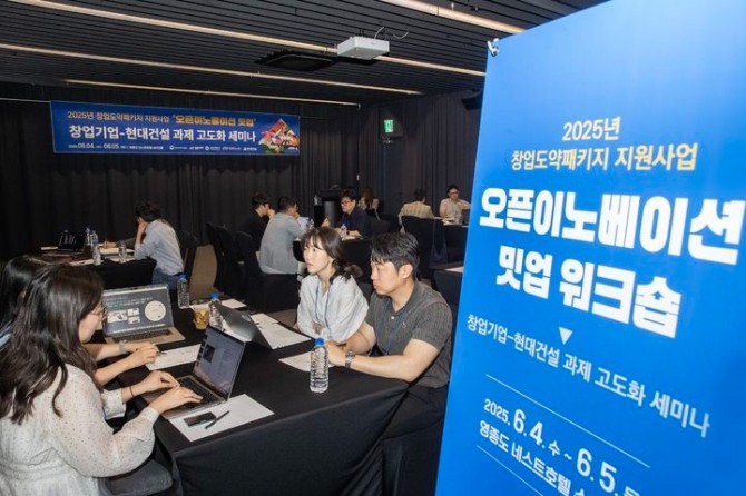 현대건설이 지난 4일부터 5일까지 인천 영종도에서 개최한 2025년 창업도약패키지 지원사업 '오픈이노베이션 밋업 워크숍' 행사 모습. 사진=현대건설이미지 확대보기