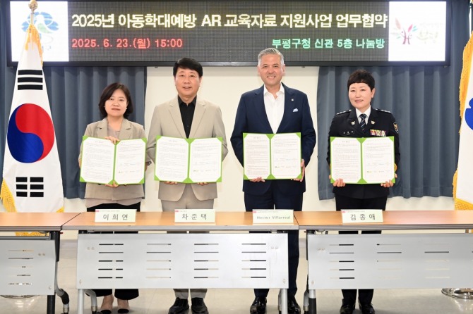 인천 부평구는 지난 23일 구청에서 ‘아동학대 예방 증강현실(AR) 교육자료 지원사업’ 추진을 위해 지엠한마음재단코리아, 인천북부아동보호전문기관, 부평경찰서와 4자 업무 협약을 체결했다고 24일 밝혔다.