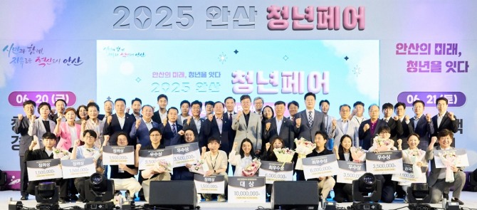 지난 20일 경기테크노파크가 개최한‘2025 ANSAN START UP 청년창업 경진대회’에서 수상자들이 단체 촬영하고 있다. 사진=경기테크노파크이미지 확대보기