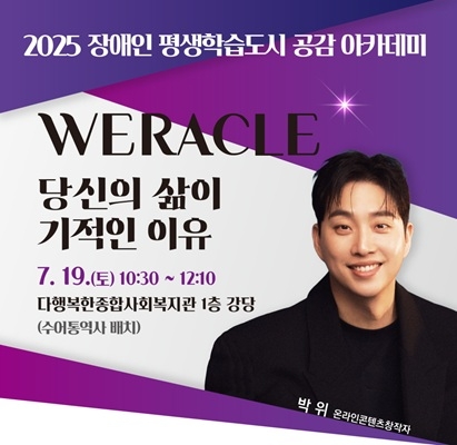 19일 ‘박위’ 초청 강연... 장애인 평생학습도시 공감 아카데미 개최
