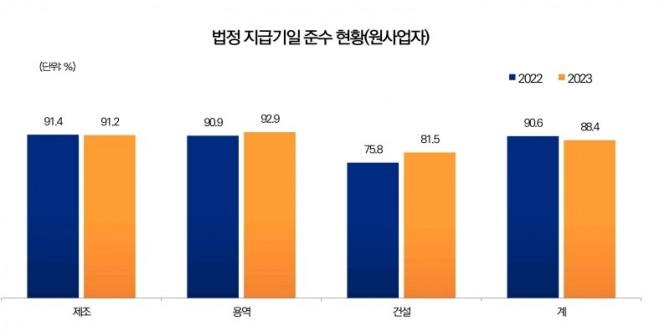 공정위가 지난해 12월 발표한 ‘2024년 하도급거래 실태조사 결과’에서는 건설사가 하도급대금을 제때 지급한 비율이 81.5%로 주요 업종 중 가장 낮게 나왔다. 평균은 88.4%다.