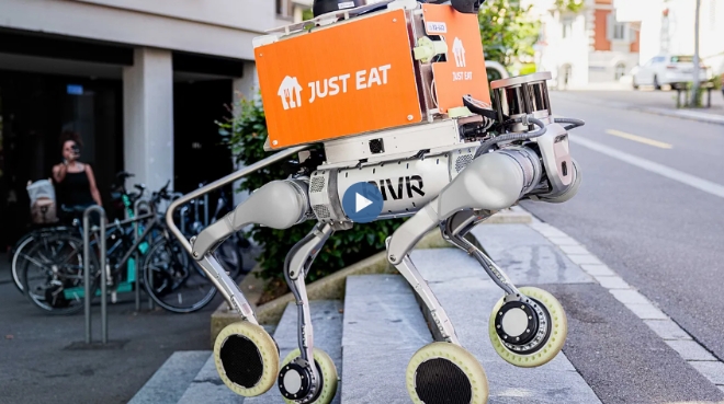 스위스 취리히 도심의 한 패스트푸드점에서 출발한 로봇 개는 시속 15㎞로 이동하며 비·눈·폭염·강풍 등 악천후에도 운행할 수 있도록 설계됐다. 네 바퀴와 다리를 동시에 갖춘 하이브리드 구조로 계단을 오르고 쓰레기통이나 잔디 같은 장애물을 피해 보행자·자전거·자동차 사이를 유연하게 통과한다.