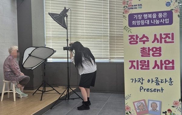 지난 27일 장안읍 동부산농협 3층에서 어르신 8명이 장수사진 촬영을 마쳤다. 이를 통해 어르신들의 존엄과 삶의 의미를 되새기고, 경제적 이유로 촬영 기회를 갖지 못했던 분들께 특별한 추억을 선물하는 뜻깊은 시간이 되었다.
