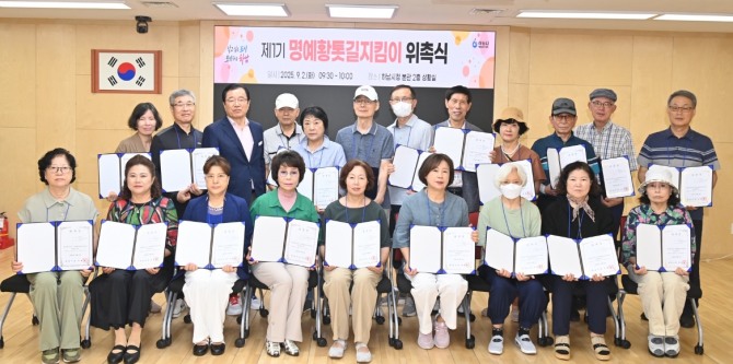 이미지 확대보기시는 지난 2일 ‘제1기 명예황톳길지킴이 위촉식’을 열고 총 27명을 위촉했다고 3일 밝혔다. 이들은 앞으로 1년간 하남 전역의 황톳길과 맨발길에서 청소·관수·시설물 점검 등 현장 관리 활동을 수행한다.