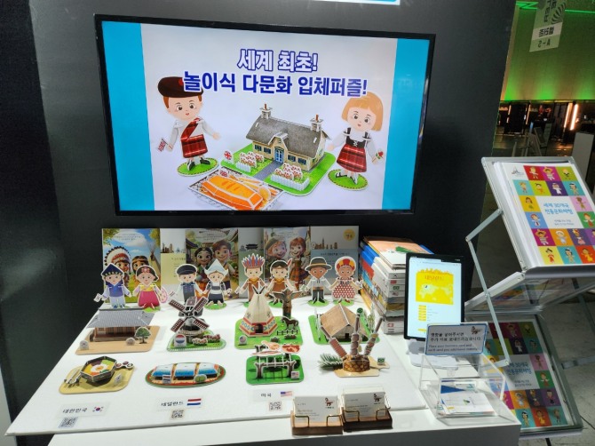 ‘리틀헤르메스’는 QR 기능을 종이입체퍼즐에 접목해 온라인 다문화 교육까지 가능한 융복합 스마트 교구다.