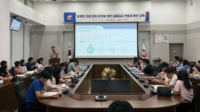 이미지 확대보기중소기업중앙회는 지난 11일 한전KPS 나주 본사에서 계약 담당자들을 대상으로 '납품대금 연동제 설명회'를 개최했다고 12일 밝혔다.