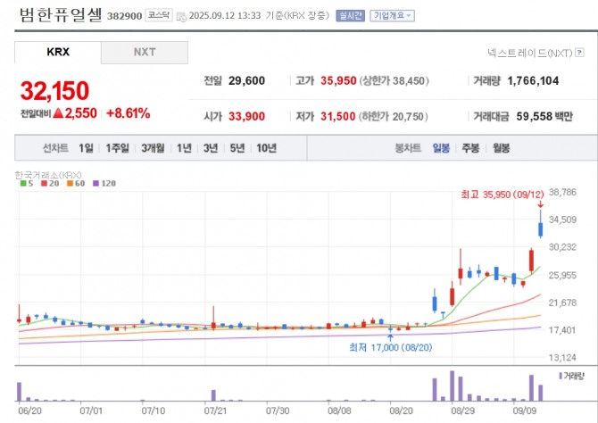 범한퓨얼셀 주가 추이. 자료=네이버페이 증권