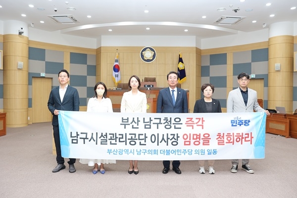 더불어민주당 부산 남구의회 의원들은 지난 17일 성명을 통해 “이번 인사는 최소한의 도덕성과 공직 윤리를 저버린 결정이며, 공공기관의 책임성과 투명성을 뿌리째 흔드는 반(反)시민적 행위”라고 강력히 규탄했다.