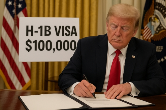 트럼프 대통령은 지난 19일 백악관에서 H-1B 비자 소지자나 기업 후원자가 연간 10만 달러의 비자 수수료를 내도록 하는 대통령령에 서명했다. 이 수수료는 21일 오전 12시 1분(동부표준시)부터 시행한다.