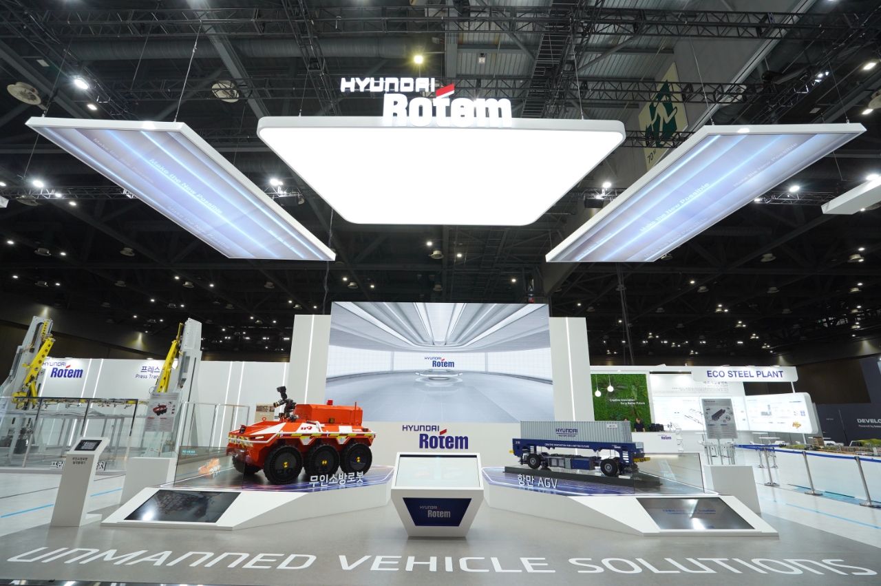 현대로템은 차세대 모빌리티 시장에서 떠오르는 무인화와 전동화, 친환경 기술을 주제로 부스를 꾸려 차별화된 제품군을 소개한다. 먼저 무인 모빌리티에 특화된 전시 공간에는 무인소방로봇과 항만무인이송차량(AGV)등 인공지능(AI) 기술이 접목된 차량이 관람객을 맞이한다.