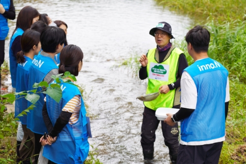 현장에는 분야별 전문가와 HK이노엔을 비롯한 협력 기업 임직원, 그리고 자연환경모니터링 시민 요원 등 약 70여명이 함께 했다. HK이노엔 임직원들은 직접 율동저수지 일대에 들어가 저서성 대형 무척추동물을 관찰하고 관찰 내용을 자연활동 공유 플랫폼인 ‘네이처링 어플’에 기록하며 생물다양성지도 만들기에 동참했다.